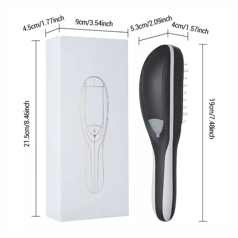 Dieser Rotlichtkamm hat einen speziellen Behälter für Ihre Haarpflegeprodukte. Da die Massage hilft, die Poren zu öffnen, dringen sie tiefer in die Haut ein.