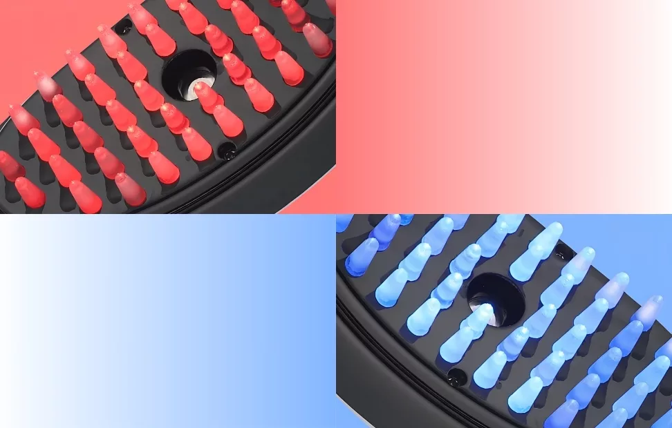 Unser Kamm strahlt rotes und blaues Licht aus, das gereizte Haut beruhigt. Es behandelt die Probleme von Trockenheit und Juckreiz, wodurch Unbehagen beseitigt wird.