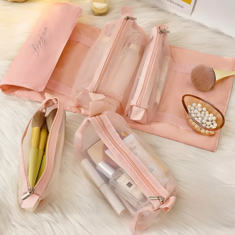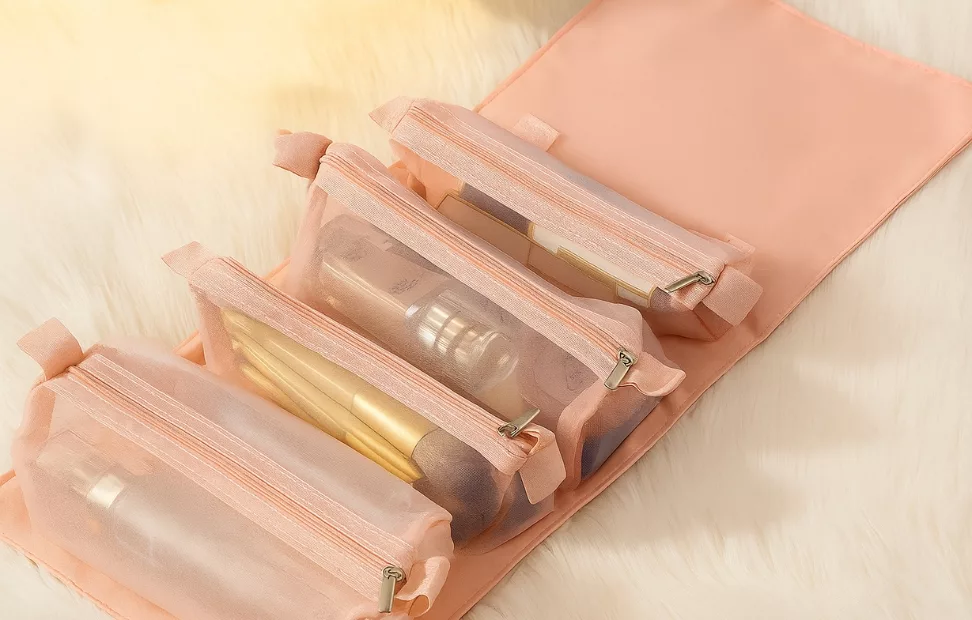 Die gepolsterten Reißverschlusstaschen lassen sich schnell an- und abknöpfen, so dass Sie nur das einpacken, was Sie brauchen. Es ist großartig, um Hautpflege-, Haarpflege- und Make-up-Essentials zu trennen.