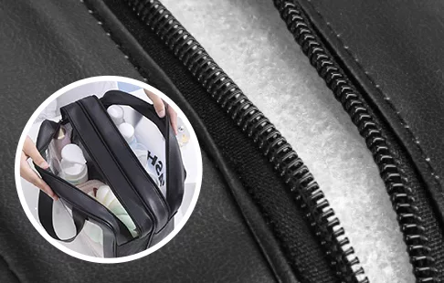 Sie sichert Ihre Habseligkeiten an Ort und Stelle und verhindert versehentliche Verschüttungen. Die Reißverschlüsse gleiten sanft, sodass Sie die Schminktasche problemlos öffnen können.