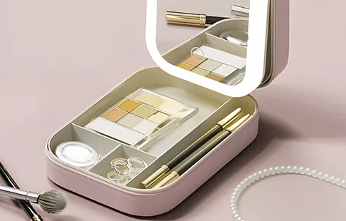 Ordnen Sie Ihre Schönheitsartikel mit dieser cleveren Lösung. LED-Leuchten helfen Ihnen, jedes Detail schnell und klar zu sehen. Kompakte Größe passt leicht in Taschen oder Gepäck für tägliche Reisen.